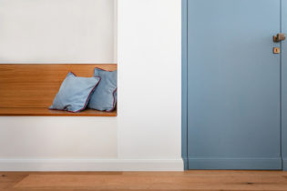 L’originaria zona notte è stata convertita in zona giorno ed eliminati i muri, creando così, una amplia zona open space aperta verso il terrazzo; lunghe mensole in muratura percorrono una parete dall’ingresso al terrazzo colorando con libri e ricordi di viaggio la parete libera.